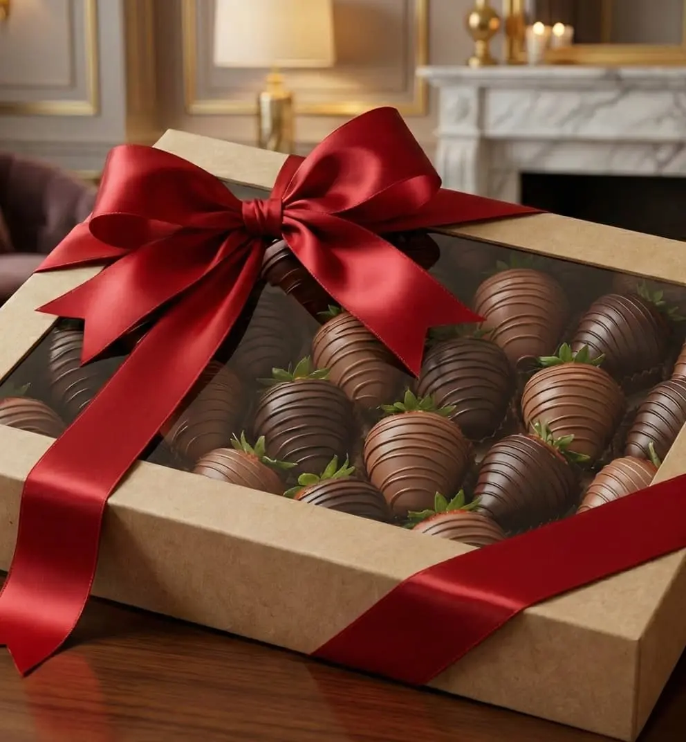 Свежая отборная клубника в бельгийском шоколаде. Вкусный подарок для самых любимых.