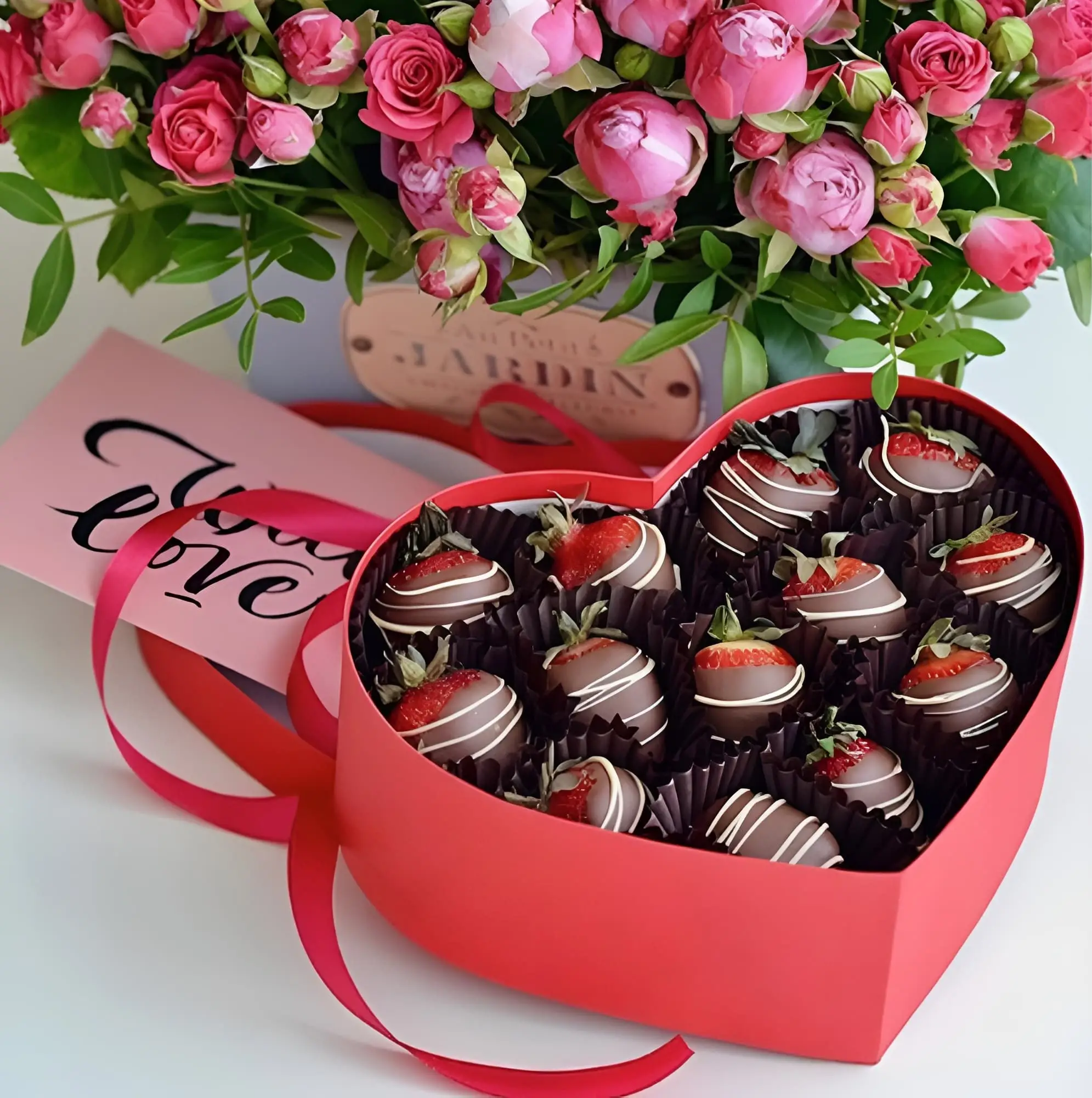 - Премиум коробка сердце включает около 50 клубник, в зависимости от размера ягод.