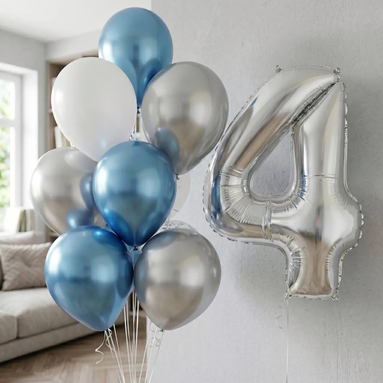 Шарики с цифрой: хром синие и серебро
