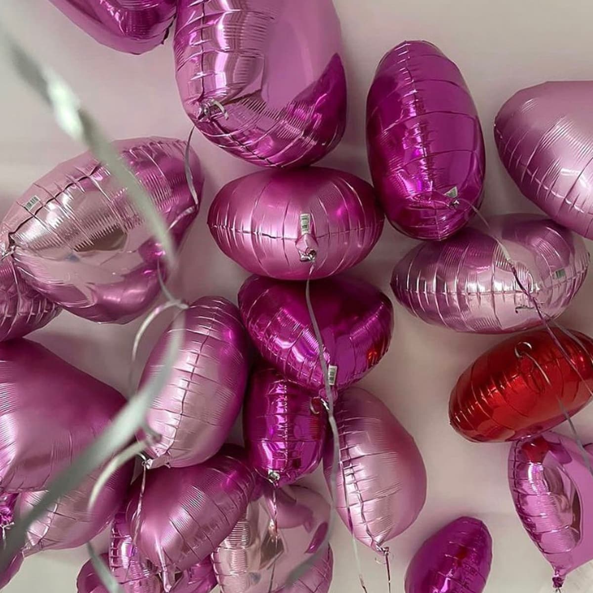 Шарики сердечка: розовые, малиновые, красные под потолок