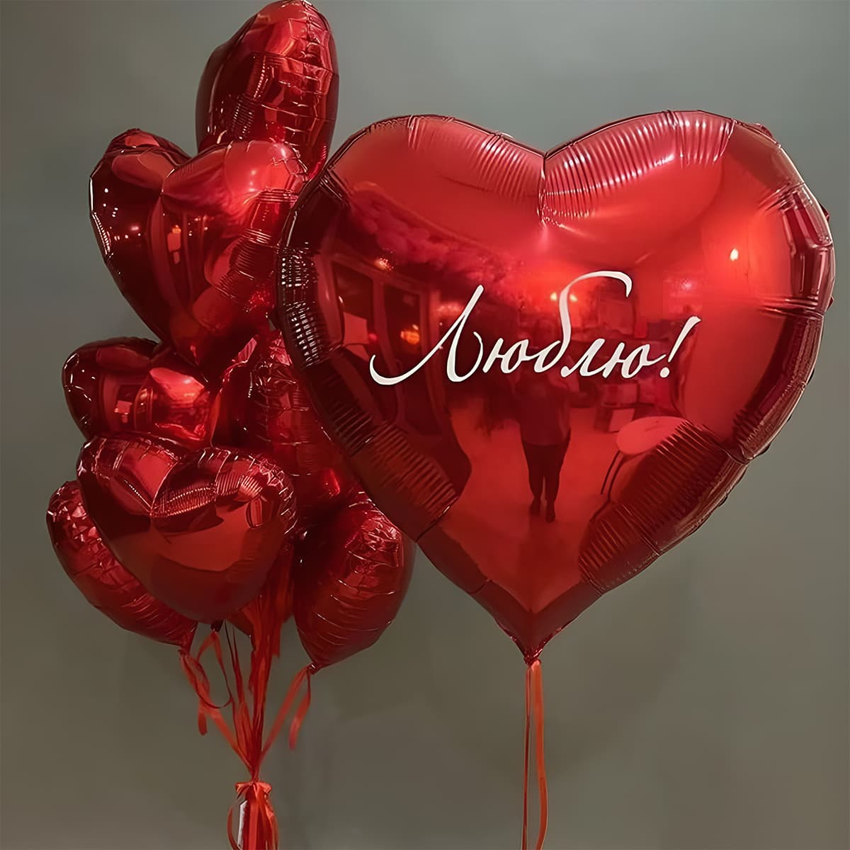 Гелиевые шарики сердца красного цвета - Люблю