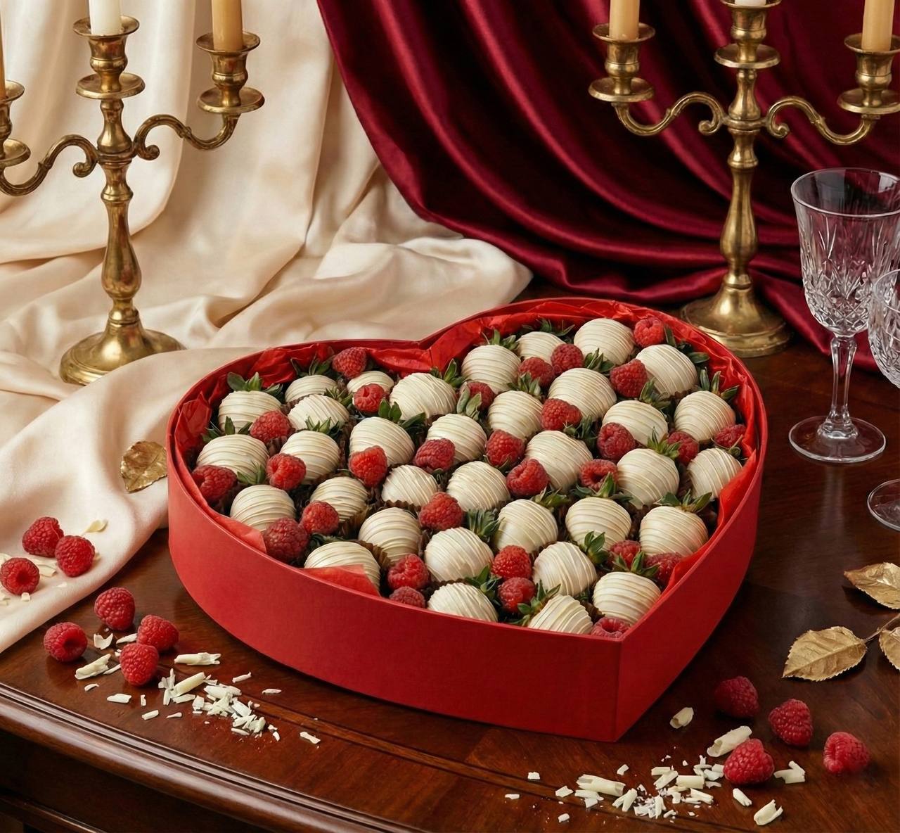 Клубника в белом шоколаде с малиной в коробке премиум