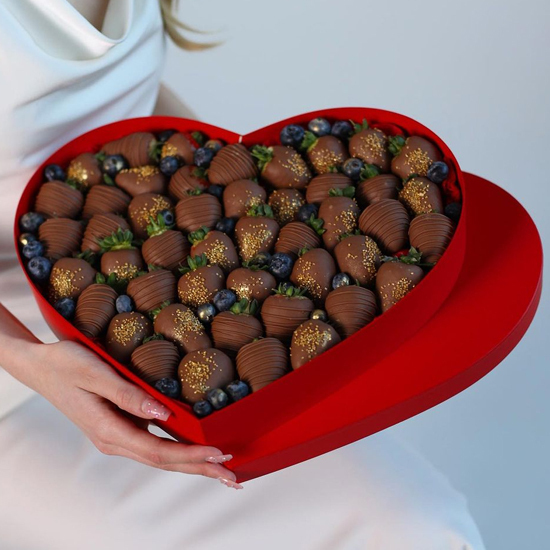 - Преміум коробка серце включає близько 50 полуниць, залежно від розміру ягід.