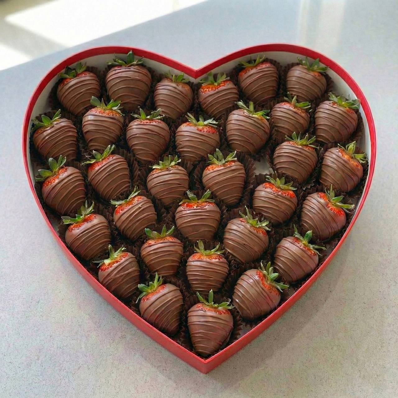 • Премиум коробка сердце включает около 45-50 клубник, в зависимости от размера ягод.