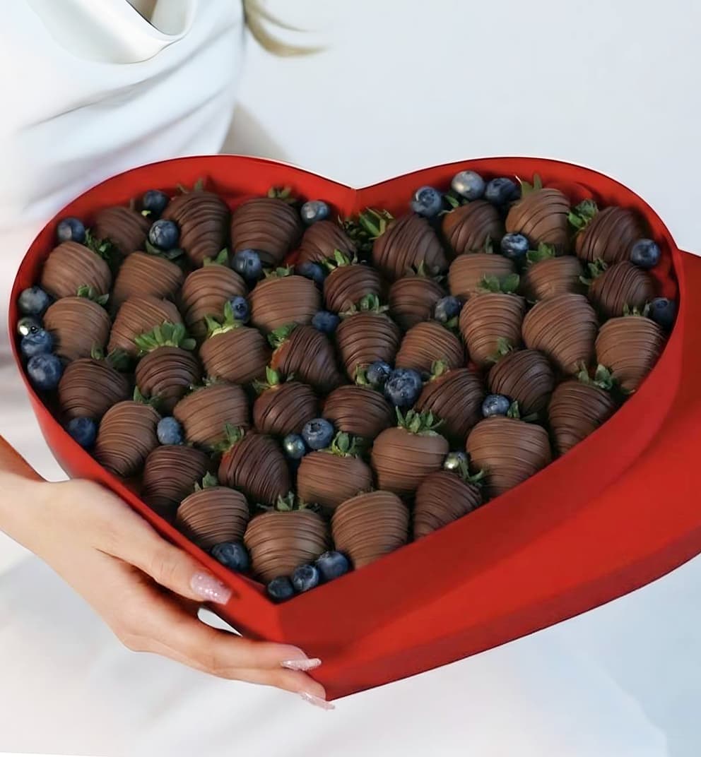 Клубника в молочном у темном шоколаде с ягодами голубики в премиум коробке сердце