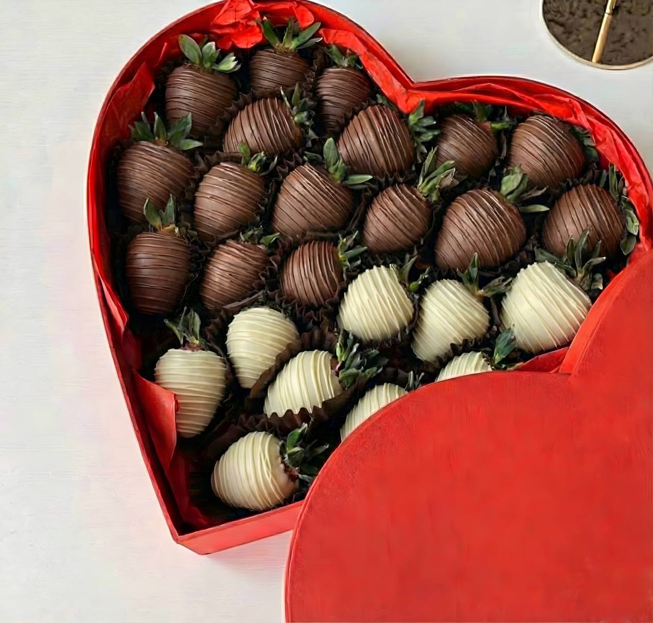 - Премиум коробка сердце включает около 45-50 клубник, в зависимости от размера ягод.