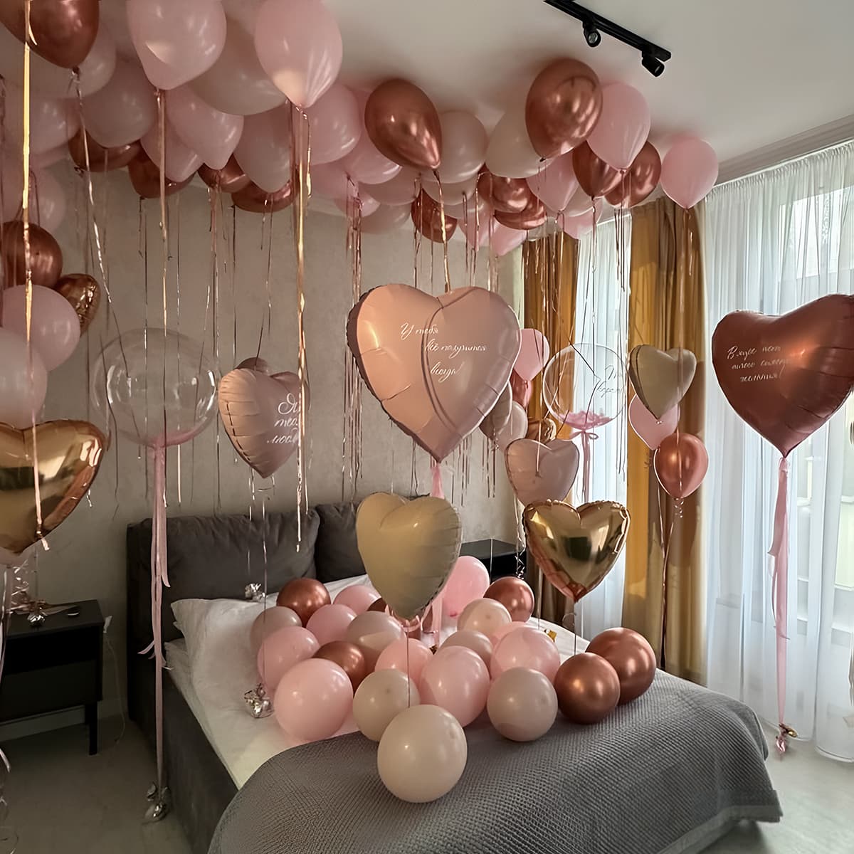 Шарики-сердца розовое золото: готовый нежный подарок для девушки