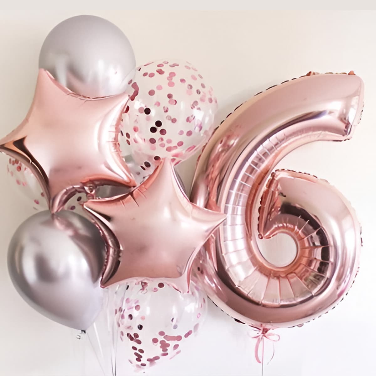 Шары на год девочке розовое золото: цифра, сердечки, звезды