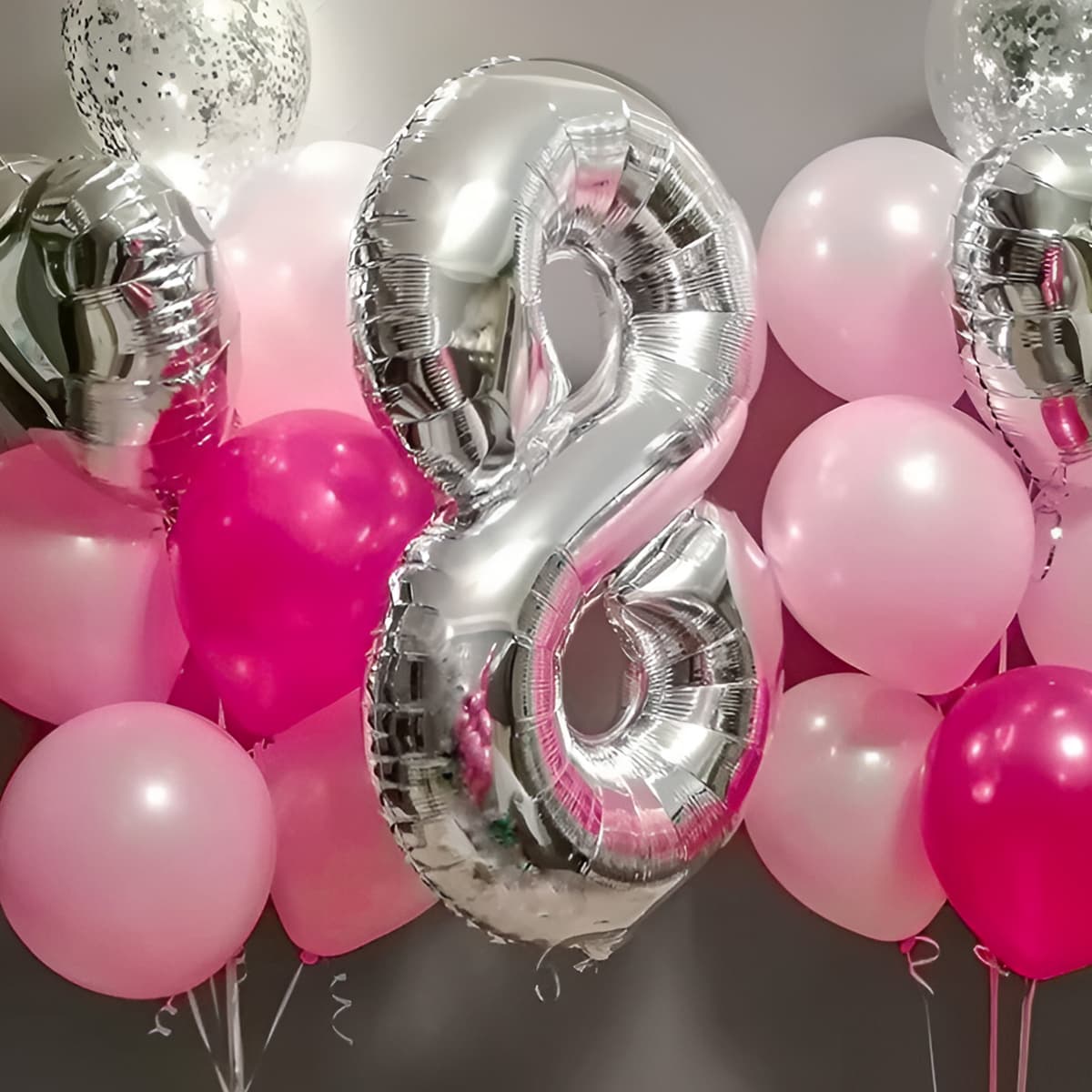 Шарики с гелием девочке: серебро, малиновые, розовые