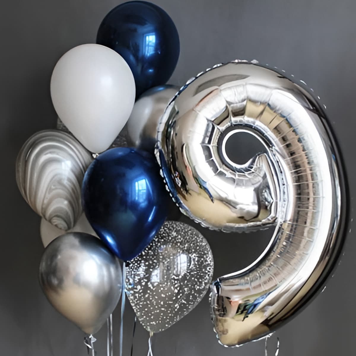 Гелиевые шарики с цифрами: хром-синие и золотые